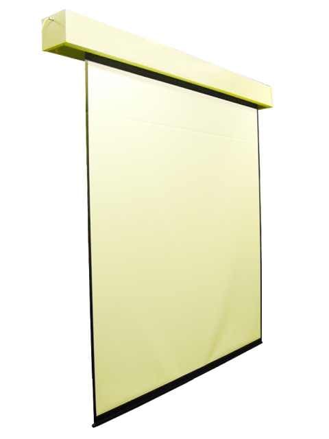 使用するときに、スクリーンが降下し傾斜します。学校の視聴覚室などで使用されています。
